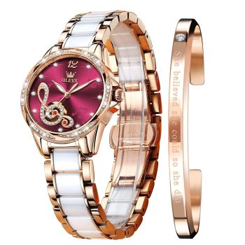 Elegant Women’s Automatic Mechanical Watch with Ceramic Steel Strap