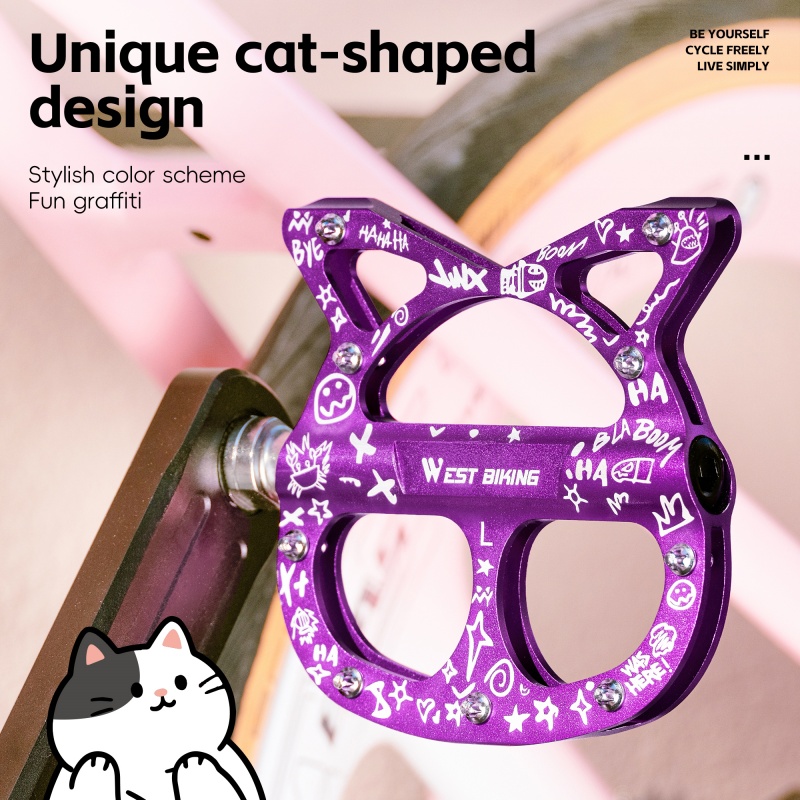 Upgrade your bike with pedals that do more than just spin. These ultralight aluminum bicycle pedals combine performance, comfort, and a playful cat-shaped design that instantly stands out. Built for riders who want smooth power transfer and reliable grip, they are designed to make every ride feel more controlled, stable, and enjoyable. Whether you are commuting, training, or exploring new trails, these pedals bring both function and flair to your bike.