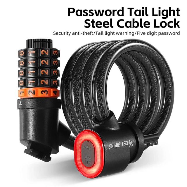 The lock includes a tough steel cable wrapped in PVC for durability, a bright taillight powered by a 260mAh battery, and a simple 5-digit password system that gives you over 100,000 possible combinations. At approximately 4 ft in length and 0.47 in in thickness, it balances strength with flexibility, making it ideal for mountain bikes, road bikes, scooters, and more. Installation is quick and effortless, so you can start using it right away.