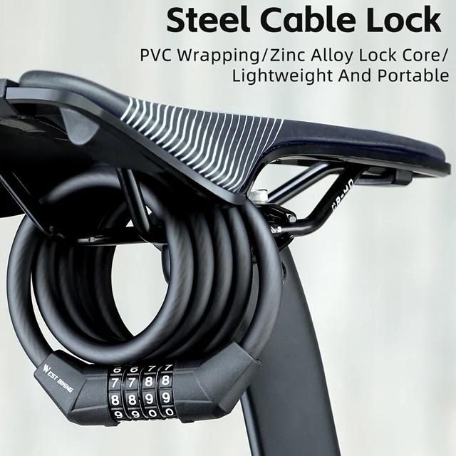 WEST BIKING Bicycle Lock 4 Digit Code 120cm Portable Anti-theft Steel Cable Lock Electric Scooter Security Cycling Accessories