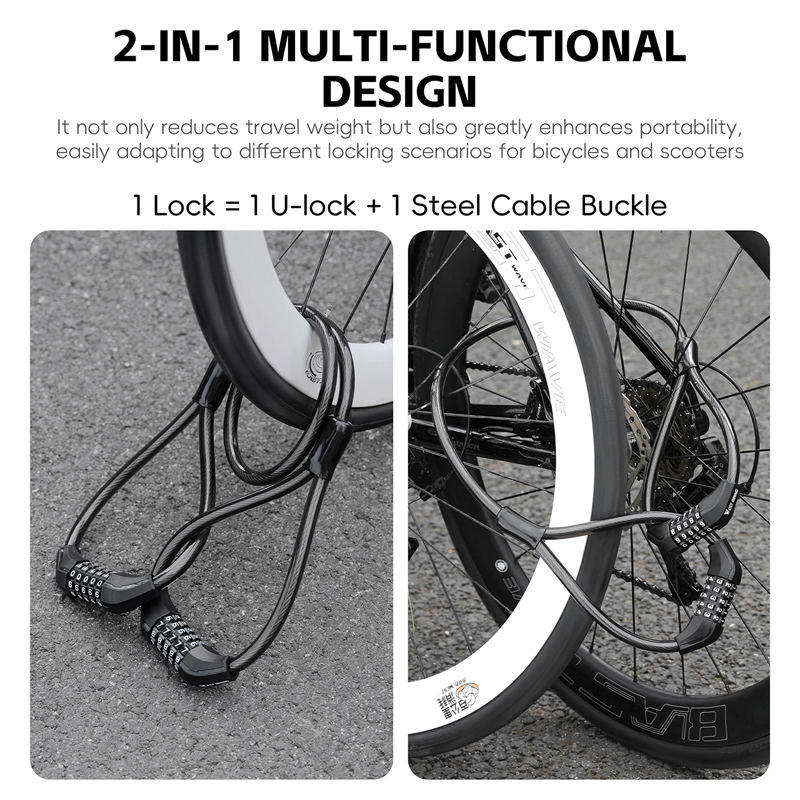 This lock is ideal for daily commuters, weekend riders, or anyone who wants extra security for their bike. Use it when parking your bike at work, school, or any public location. Its double-headed design and strong steel cable make it especially effective against opportunistic theft, while the 5-digit combination keeps it convenient and key-free for your use.
