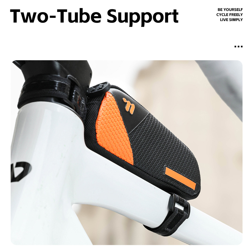 We know that extra weight can slow you down, which is why this bag is designed to be lightweight, enhancing your performance without compromising on durability. The minimalist structure maintains a sleek appearance, fitting perfectly on any bike without bulk. Enjoy easy access to your snacks, tools, and personal belongings right on your top tube!