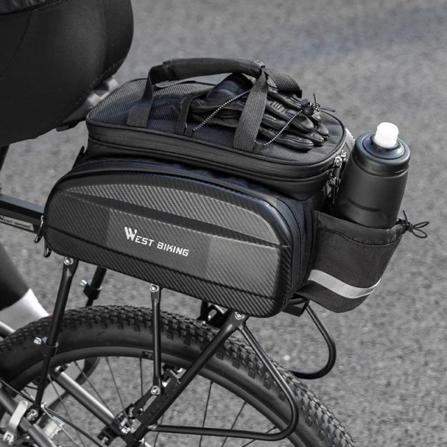 WEST BIKING Bicycle Trunk Bag Carbon Patterned Hard Shell Pannier Bag Basic 11L/Expandable 17-31L MTB Bikepacking Accessories