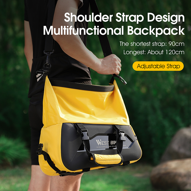 Made from high-quality waterproof polymer fabric with a reinforced PVC inner layer and flexible TPU hard shell, this bag is built to handle daily use and changing weather. It resists tears, wear, dust, and splashes, keeping your gear dry and protected during light rain and rough rides. The roll-down closure adds extra water resistance, so your essentials stay safe wherever the road takes you.