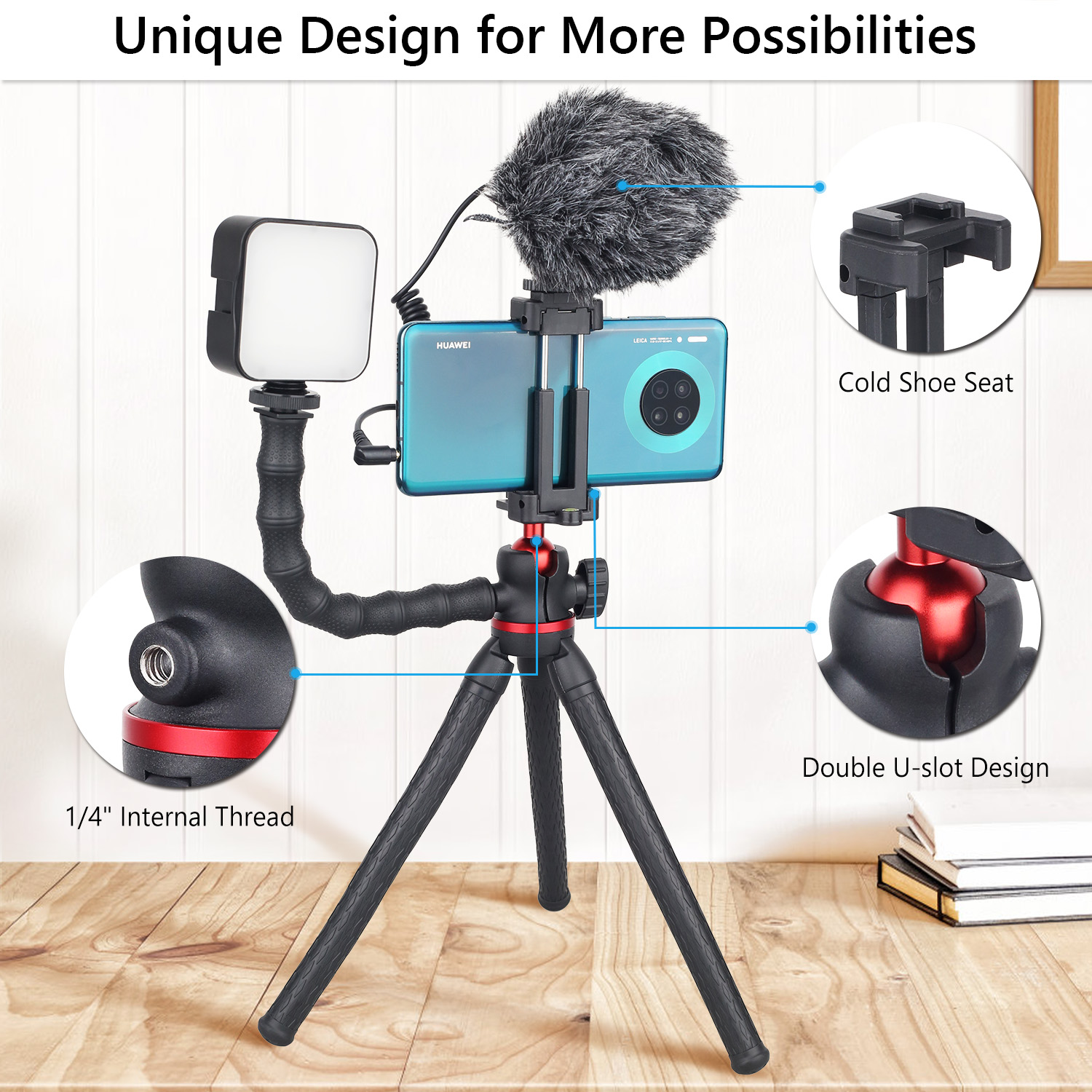 This tripod features flexible, high-quality legs that easily wrap around poles, branches, handlebars, and more. Standing at just 9.6 inches and weighing under 1 lb, it’s the perfect companion for travel, home use, outdoor shoots, and on-the-go content creation. The legs are non-slip, waterproof, corrosion-resistant, and built to withstand repeated bending without losing their shape, making it ideal for use in rain, rugged terrain, or unpredictable environments.
