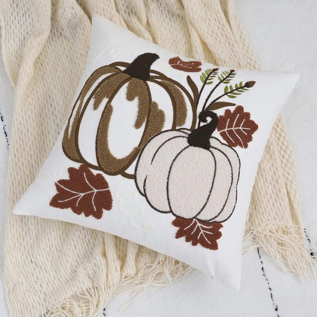 • Elegant Embroidery: Detailed pumpkin embroidery adds a seasonal yet timeless charm, perfect for fall and Thanksgiving décor.