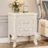 White Carved Nightstand with 2 Drawers