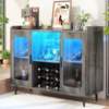 Modern Wine Bar Cabinet with LED Lights, Power Outlet & Glass Holder