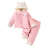 Winter 2pcs Littile Girls Cat Print Fleece Hooded Snowsuits Jacket+Pants Set Baby Clothes Outfits Casual Plush Homewear 0-3Y