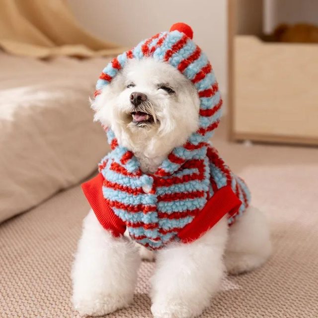 Warm Cartoon Striped Dog Hoodie for Small & Medium Pets