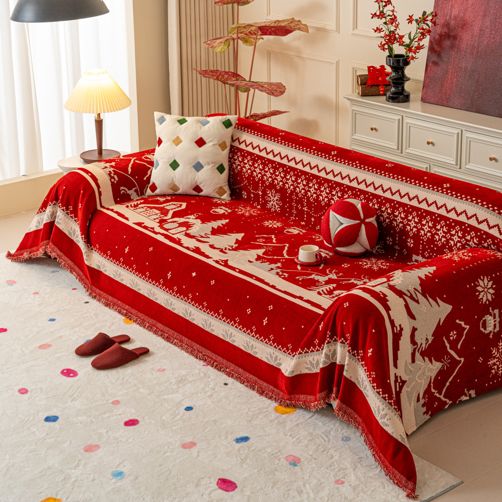 Turn your living space into a warm and cheerful holiday haven with this festive red Christmas tree patterned sofa cover and blanket. Designed to be both decorative and practical, it adds instant seasonal charm while keeping your furniture protected and your family cozy. Whether you are watching movies, relaxing with a book, or preparing your home for Christmas guests, this multifunctional piece fits beautifully into your winter routine.