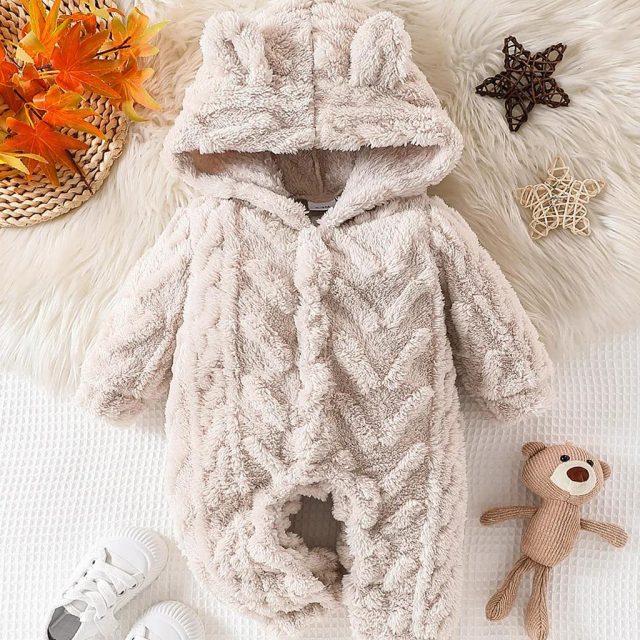 Ideal for outings in cold weather, family gatherings, or simply snuggling indoors, this fluffy hooded romper is a must-have for every baby’s wardrobe. It combines comfort, warmth, and adorable style—everything parents love and babies need. Treat your little one to a romper that feels like a hug. Order yours today and let your baby experience warmth and cuteness all season long!