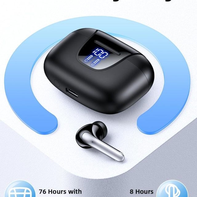 Wireless Bluetooth 5.3 Earbuds with Deep Bass, 76H Playtime & LED Display