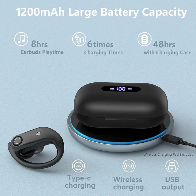 Enjoy cutting-edge technology at your fingertips. The LED digital power display makes it easy to see exactly how much battery is left on both the earbuds and the charging case. With wireless charging and USB-C fast charging options, keeping your music powered has never been simpler. Bluetooth 5.0 provides a seamless, stable connection for faster pairing and uninterrupted listening.