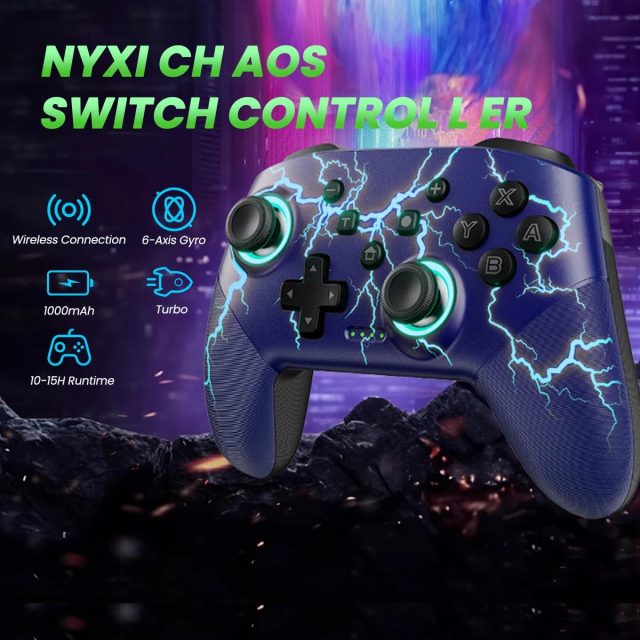 Take your gameplay to the next level with the Wireless Switch Pro Controller designed for Switch, Switch Lite, Switch OLED, PC (wired), iOS, and Android. With a bold lightning bolt design and vibrant RGB lighting, this controller doesn’t just perform—it looks incredible while doing it. Whether you’re playing in the dark or showing off your setup, the customizable light modes make your controller stand out. Packed with smart features like programmable buttons, turbo burst modes, and immersive vibration feedback, it’s built to enhance every gaming session.
