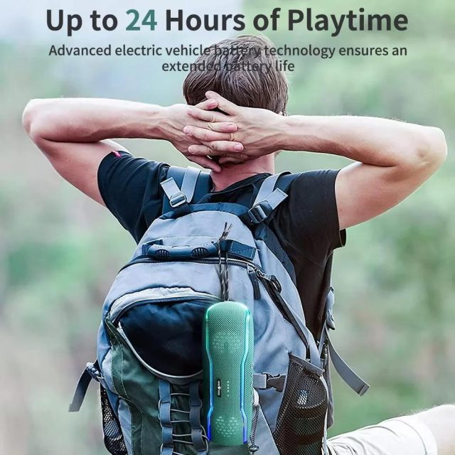 This speaker is made for outdoor fun. With an IPX7 waterproof rating, it can handle splashes, rain, and even poolside drops. Its rugged, durable design ensures it stands up to your most exciting adventures—whether you’re camping under the stars, biking through trails, or dancing at a beach party. You can also pair two speakers together for true stereo surround sound, creating an even bigger and more powerful audio atmosphere.
