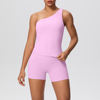 Meet your new favorite workout set. This women’s 2-piece yoga outfit is designed to move with you, support you, and flatter you from every angle. Featuring a modern one-shoulder crop top and sculpting high-waist shorts, this set blends fashion-forward style with serious performance. Whether you’re stretching on the mat, powering through a workout, or styling it for an active day out, this set makes you feel confident, strong, and put together.