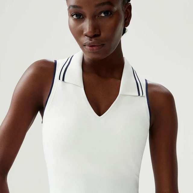 • Slim-fit sleeveless design offers full mobility and a flattering silhouette.