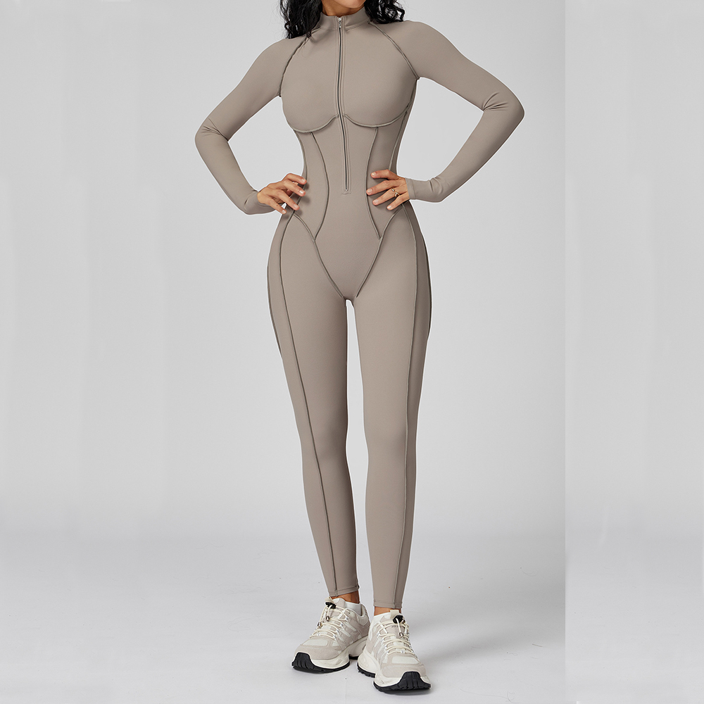 Crafted from a premium blend of nylon and spandex, this jumpsuit delivers unmatched stretch and durability. The breathable, quick-dry fabric keeps you cool and dry, even during the most intense sessions. The anti-pilling, anti-shrink, and anti-wrinkle features ensure your outfit stays smooth and fresh wash after wash. With a sleek zipper front design and a figure-flattering cut, this piece transitions effortlessly from the gym to casual wear.