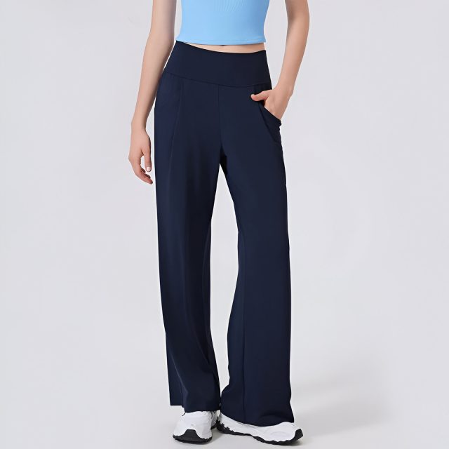 Perfect for yoga sessions, gym workouts, running, or everyday leisure, these pants are crafted to deliver versatility throughout all seasons. The high-rise waistband provides a secure, flattering fit, while the wide-leg, flared silhouette adds a touch of effortless elegance. Slash pockets offer convenient storage for small essentials, making these trousers not only stylish but practical. With solid color options like black, blue, coffee, and green, you’ll have a pair that complements any activewear wardrobe.