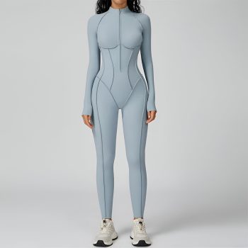 Sexy Long Sleeve Workout Romper – Zipper Front Gym Jumpsuit for Women