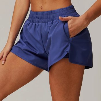 High-Waist Quick-Dry Two-Layer Yoga Shorts with Pockets