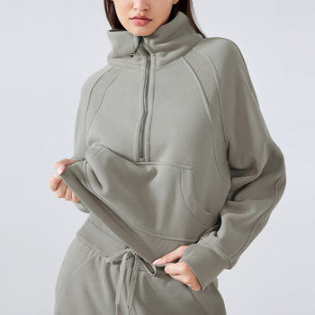 Womens Fleece Lined Half Zip Winter Pullover with Thumbholes and Pocket