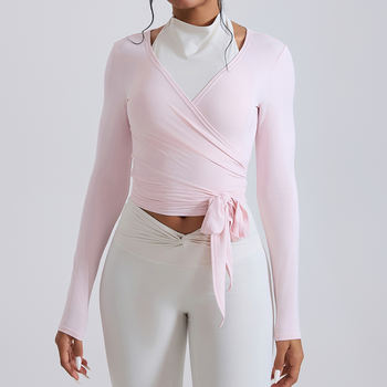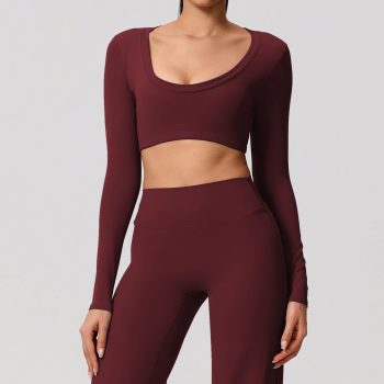 Women’s Breathable Yoga Long Sleeve Crossover Back Fitness Cover-Up Top