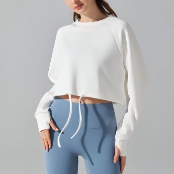 Soft Crewneck Cropped Sweatshirt for Women – Lightweight Long Sleeve Pullover with Thumb Holes