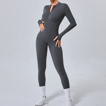 Women’s Seamless Long-Sleeve Yoga Jumpsuit with Zipper