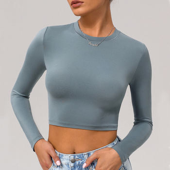 Women’s Slim Fit Long Sleeve Yoga Crop Top – Quick Dry Workout Shirt