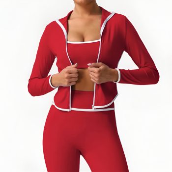 Women’s Contrast Zipper Long Sleeve Workout Jacket – Breathable Fitness Top