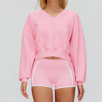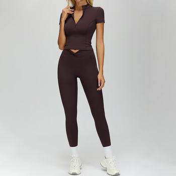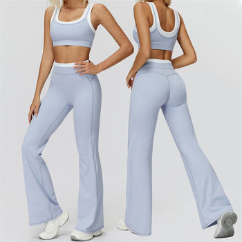 Women’s Slim Fit Yoga Tracksuit Set with Ribbed Contrasting Color