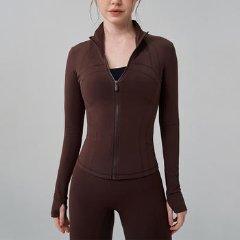 Trendy High Neck Warm Plush Zipper Yoga Jacket for Women
