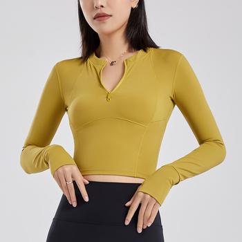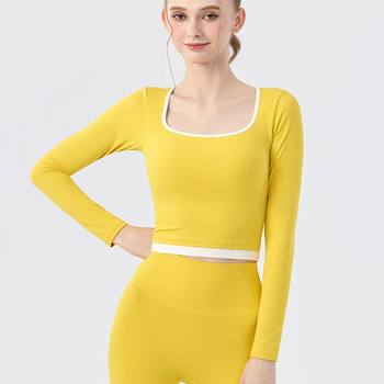 Autumn Winter Long Sleeve Yoga Top for Women with Chest Pad and Hollow Back Design