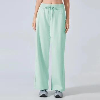 Solid Color High-Waist Drawstring Pocket Wide Leg Sweatpants for Women