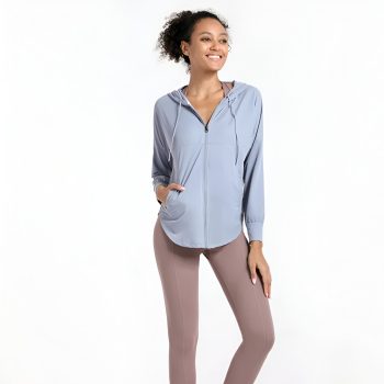 Solid Color Women’s Zip-Front Sporty Long Sleeve Hoodie Fitness Top