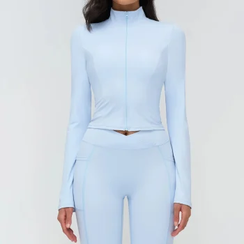 Women’s Slim Fit Long Sleeve Yoga Jacket with Zipper & Stand Collar