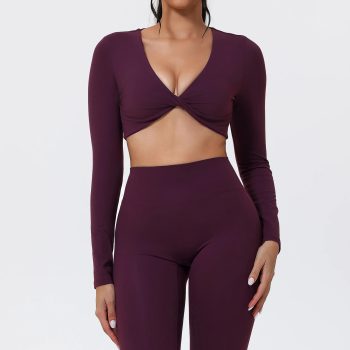 Eco-Friendly Twist-Knot Long Sleeve Cropped Sports Top for Women