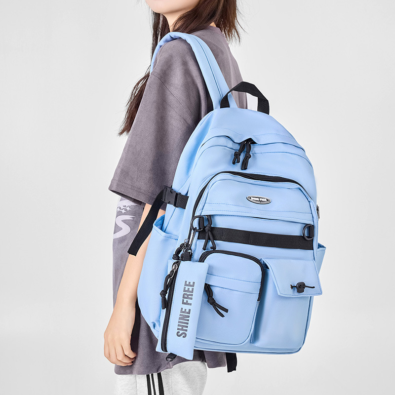 Meet the backpack designed to move with you. This lightweight nylon travel backpack blends modern fashion with everyday practicality, making it the perfect companion for busy days, spontaneous trips, and daily routines. Its clean silhouette, subtle letter design, and embossed details give it a stylish edge while staying simple and versatile.