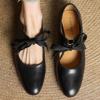 Made from high-quality cow leather, these Mary Jane flats feature a soft pigskin lining and a leather insole for ultimate comfort. With a modest 0.8 inch heel, they provide just the right amount of lift without sacrificing all-day wearability. The sturdy sticking method used in construction ensures long-lasting strength, while the lace-up closure offers a secure fit and a touch of charm.