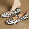 Leopard Horsehair Mary Jane Flats with Metal Buckle – Women’s Round Toe Shoes