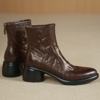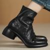 Women’s Pleated Leather Ankle Boots – Round Toe, 5cm Heel, Back Zip