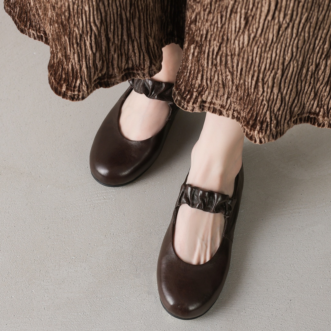 Unlike ordinary flats, these ballerinas are crafted from genuine sheepskin leather, known for its supple softness and durability. The elastic narrow band detail not only adds a touch of charm but also ensures a snug, custom-like fit. Each pair is handmade with attention to detail, offering you shoes that are as stylish as they are comfortable.