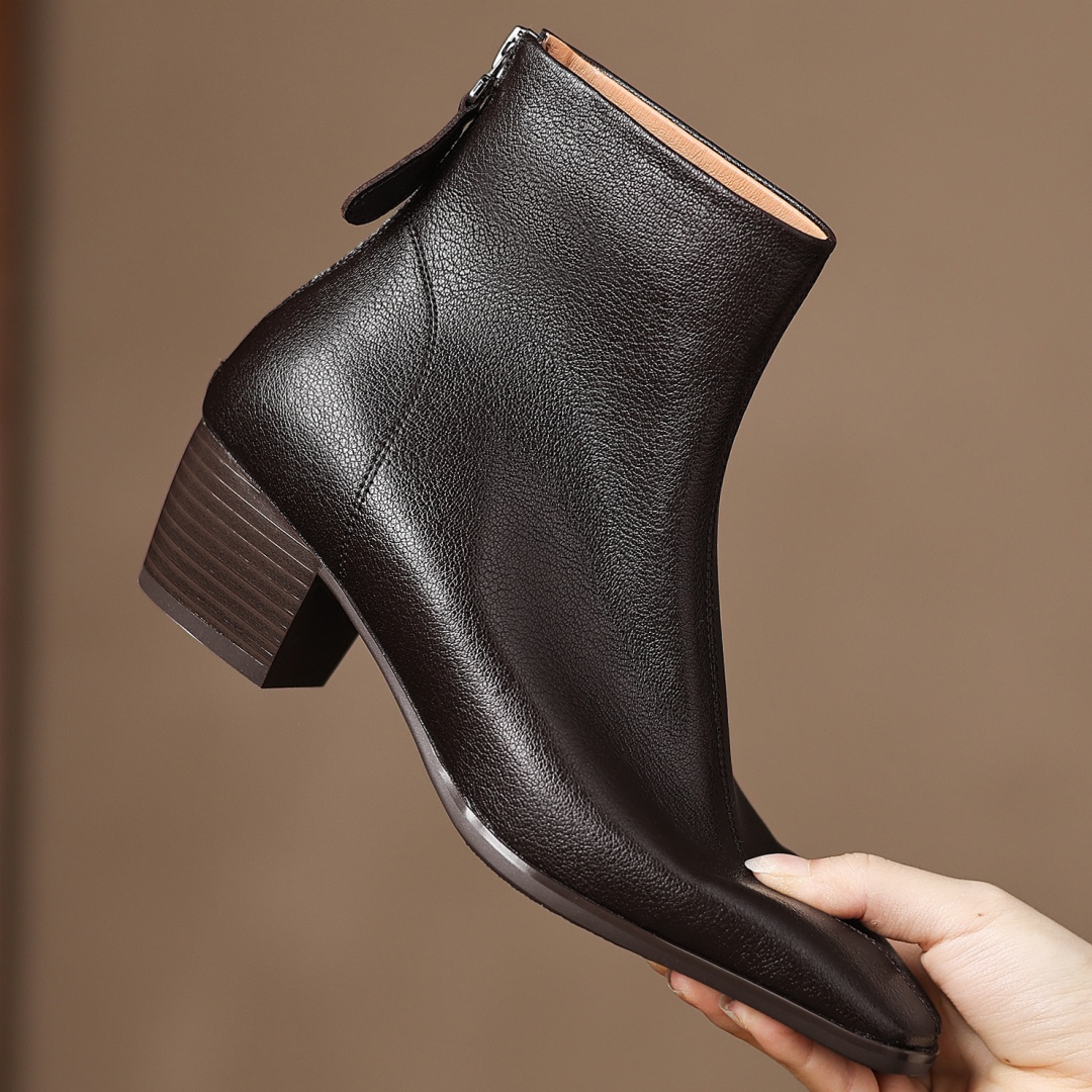 The soft interior of plush lining wraps your feet in luxurious comfort, ideal for cooler autumn days. A discreet back zipper adds a chic touch while making them easy to slip on and off. Whether you’re dressing up for work, heading to brunch, or strolling through crisp fall leaves, these boots are your go-to pair for effortless sophistication.