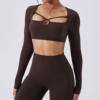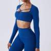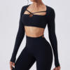 This top is made with a breathable, quick-drying fabric that helps manage moisture and keeps you feeling fresh, even during intense workouts. The long sleeves offer light coverage without feeling heavy, making it suitable for all seasons—from cool mornings to air-conditioned studios.
