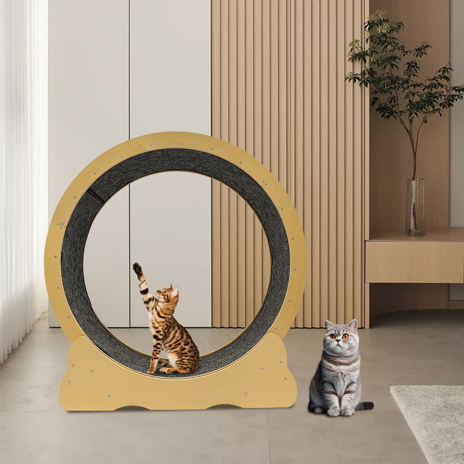Turn your living room into a cat-friendly playground. With its sturdy build, silent operation, and stylish wooden finish, this exercise wheel is not only functional but also a beautiful addition to your home. Watch your cat stay fit, entertained, and stress-free—all in one smart investment. Order now and let your cat discover a new way to play and stay healthy.