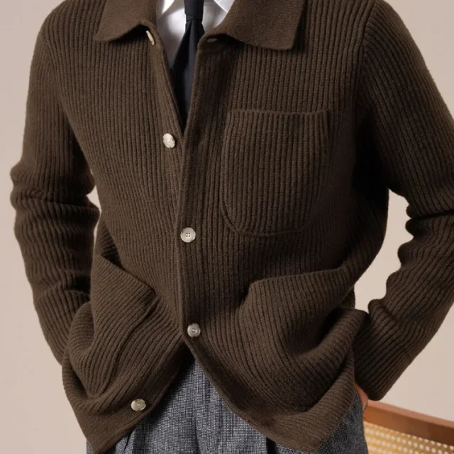 This cardigan stands out because of its lazy England-style design combined with modern craftsmanship. It features a smooth computer-knitted finish that feels premium without being heavy. The single-breasted button closure allows you to wear it open or closed, giving you flexible styling for different occasions. It’s warm enough for chilly weather but still breathable, so you won’t feel bulky or restricted.