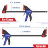 Built from high-quality carbon steel, these clamps are incredibly durable, sturdy, and resistant to rust—perfect for heavy-duty use. The quick-release grip and one-handed squeeze trigger allow for smooth, easy adjustments while maintaining a firm hold. With a fast sliding jaw design, you can switch between clamping and spreading in seconds without losing precision or strength.