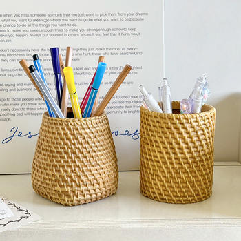 Elegant Imitation Rattan Bamboo Pen Holder & Multi-Purpose Storage Basket